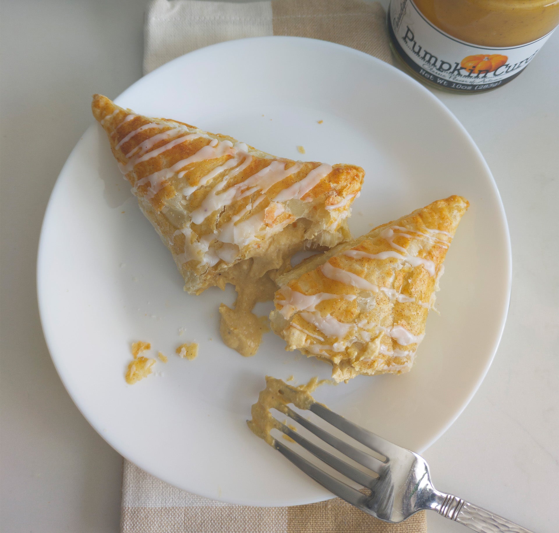 Quick and easy pumpkin spiced treats. The trick? Starting with frozen puff pastry and a delicious pumpkin curd filler. The catch? It's real hard to not eat them all in one sitting.